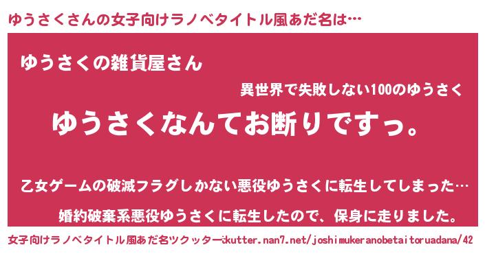| ファンタジー風あだ名 | 『ゼユウトゥ』『エターナルユウサクー』 |
