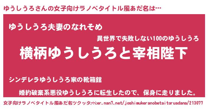 | ヘコむあだ名 | 『ゆうしうろ(遠い目)』『ゆうっちょ』 |