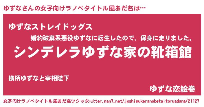 | 胡散臭い通販商品みたいなあだ名 | 『テレビで話題のアガリクス…その名も「ゆずな」』 |