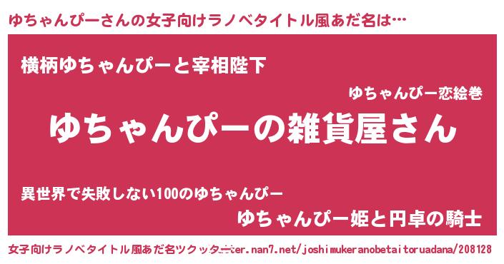 | 胡散臭い通販商品みたいなあだ名 | 『幸せが訪れる高級そうな壺…その名も「ゆちゃんぴー」』 |