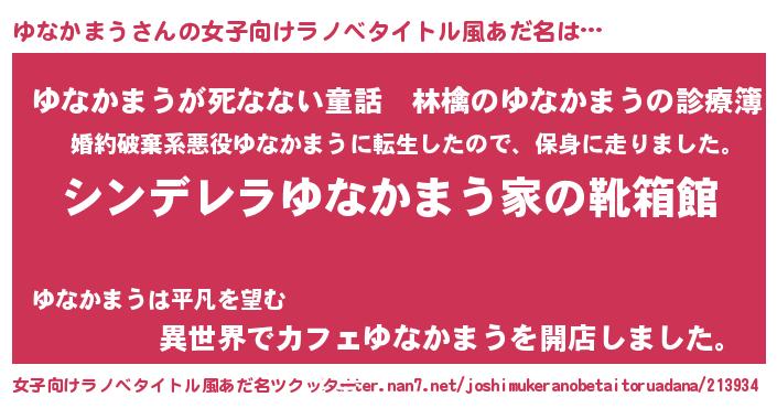 | 意味不明あだ名 | 『住所不定無職ゆなかまう(91歳)』 |
