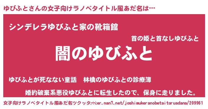 | 男性向けラノベタイトル風あだ名 | 『Re:ゆびふとから始める異世界生活』 |
