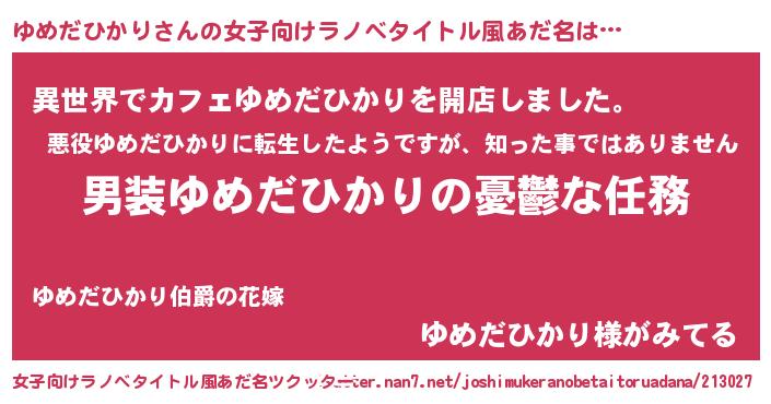 | ヘコむあだ名 | 『ゆめだひかり(笑)』『ゆめお』 |