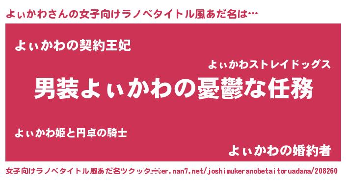| 男性向けラノベタイトル風あだ名 | 『冴えないよぃかわの育てかた』 |