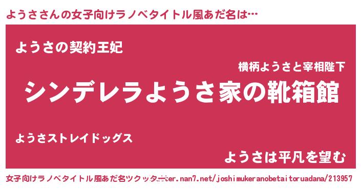 | ヘコむあだ名 | 『ようさ(遠い目)』『ようっ子』 |