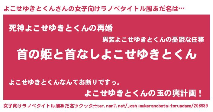 | ヘコむあだ名 | 『よこせゆきとくん(震え声)』『よこっぺ』 |