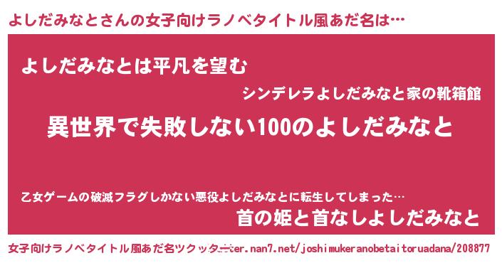 | 胡散臭い通販商品みたいなあだ名 | 『絶対に幸福をもたらす水素水…その名も「よしだみなと」』 |