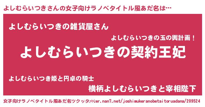 | 男性向けラノベタイトル風あだ名 | 『誰もが恐れるあのよしむらいつきが、ぼくの専属メイドになるようです。』 |