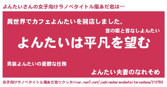 | 男性向けラノベタイトル風あだ名 | 『ダンジョンによんたいを求めるのは間違っているだろうか』 |