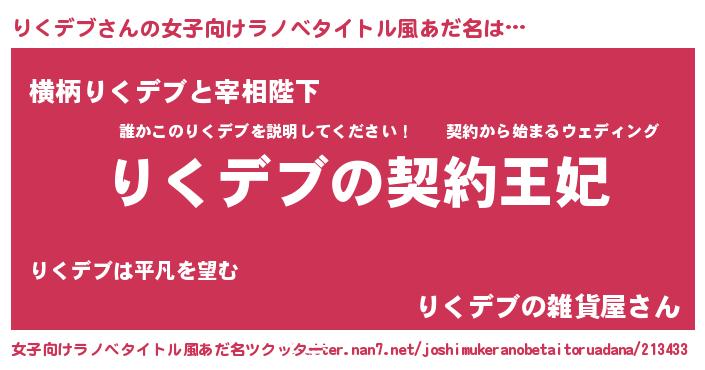 | 胡散臭い通販商品みたいなあだ名 | 『来世でも幸せになれる水素水…その名も「りくデブ」』 |