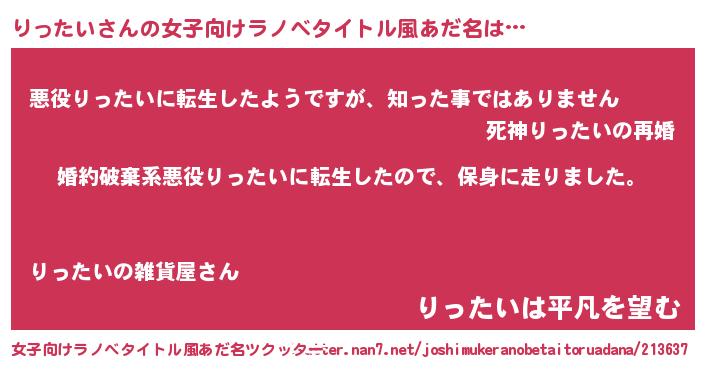 | 男性向けラノベタイトル風あだ名 | 『リッタイスレイヤー』 |