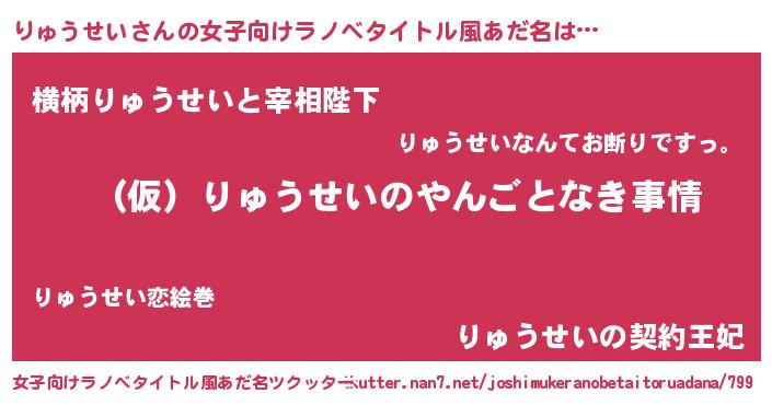 | 男性向けラノベタイトル風あだ名 | 『りゅうせいの憂鬱』 |