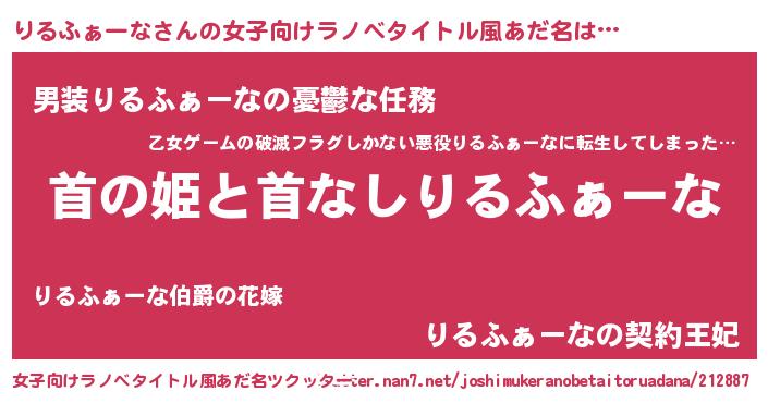 | 男性向けラノベタイトル風あだ名 | 『はたらくりるふぁーなさま!』 |