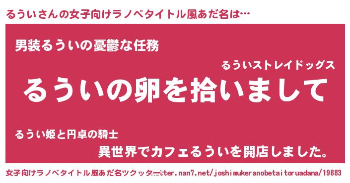 | 意味不明あだ名 | 『とにかく怪しいるうい』『自称るうい』 |