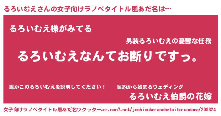 | 意味不明あだ名 | 『自称るろいむえ』『ペロリンるろいむえ』 |