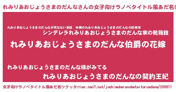 | 男性向けラノベタイトル風あだ名 | 『やはりれみりあおじょうさまのだんなの青春ラブコメはまちがっている 』 |