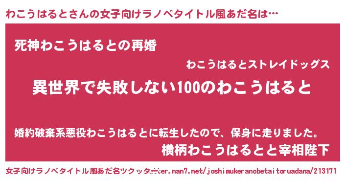 | ヒーロー風カッコイイあだ名 | 『ネオワコウハルト』『仮面ワコダー』 |