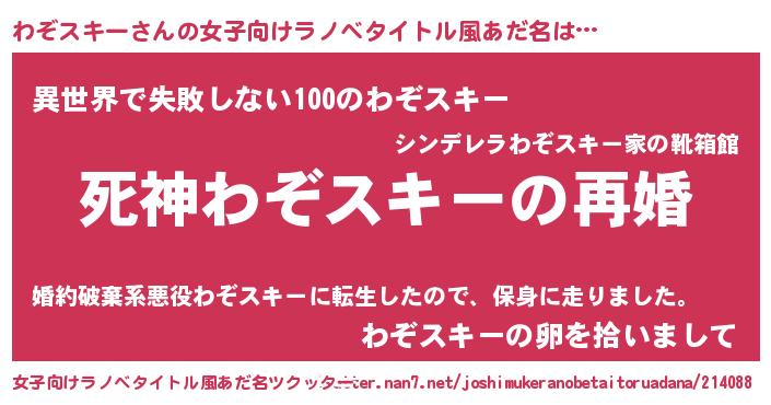 | 男性向けラノベタイトル風あだ名 | 『ノーゲーム・ノーワゾスキー』 |