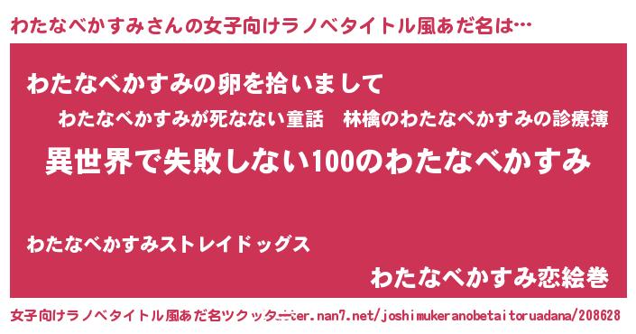 | 男性向けラノベタイトル風あだ名 | 『わたなべかすみという概念が存在しない退屈な世界 』 |