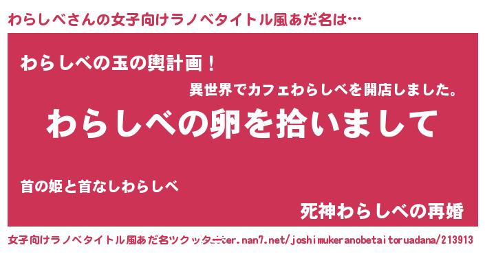 | ヘコむあだ名 | 『わらっちょ』『わらしべ(爆)』 |