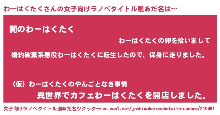 | 料理風あだ名 | 『わーはくたくごはん』 |