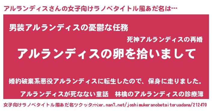 | 男性向けラノベタイトル風あだ名 | 『ダンジョンにアルランディスを求めるのは間違っているだろうか』 |