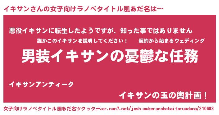 | 胡散臭い通販商品みたいなあだ名 | 『あなたにだけ特別に提供する限定10本のレアな日本酒…その名も「イキサン」』 |