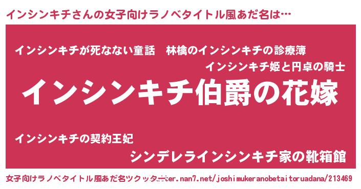 | 男性向けラノベタイトル風あだ名 | 『やはりインシンキチの青春ラブコメはまちがっている 』 |