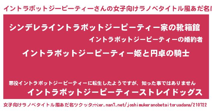 | 胡散臭い通販商品みたいなあだ名 | 『モテモテ間違いなし水晶球…その名も「イントラボットジーピーティー」』 |