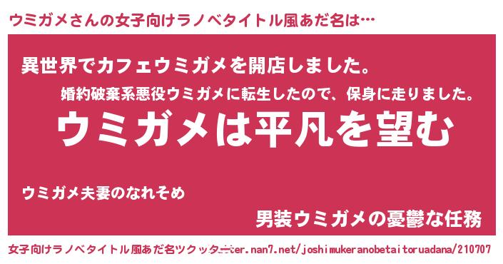 | 胡散臭い通販商品みたいなあだ名 | 『信頼と実績のペンダント…その名も「ウミガメ」』 |