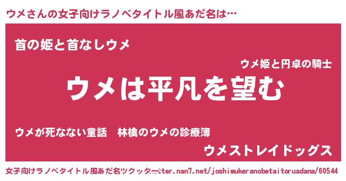 | ヒーロー風カッコイイあだ名 | 『暗黒騎士ウメ』『超時空戦士ウメ』 |