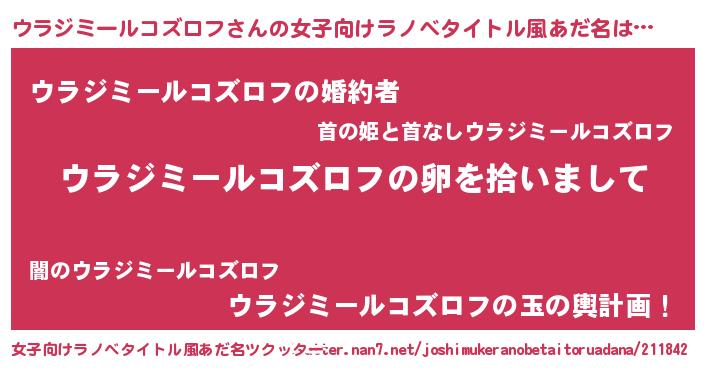 | 男性向けラノベタイトル風あだ名 | 『ダンジョンにウラジミールコズロフを求めるのは間違っているだろうか』 |
