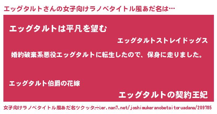 | 胡散臭い通販商品みたいなあだ名 | 『信頼と実績のネックレス…その名も「エッグタルト」』 |