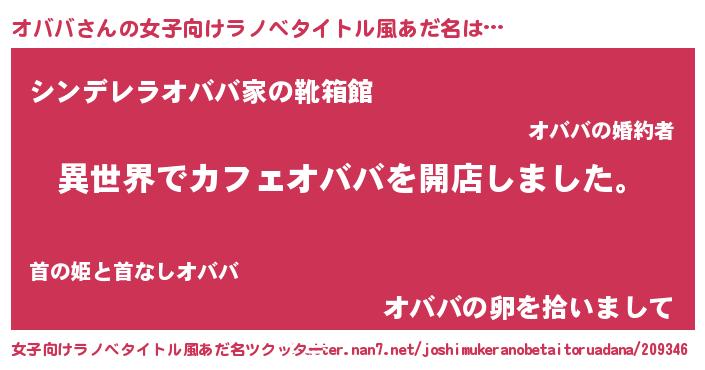 | ヒーロー風カッコイイあだ名 | 『ネオオババ』『魔戒騎士オバ』 |