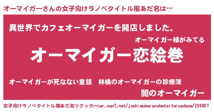 | 男性向けラノベタイトル風あだ名 | 『おまえをオタクにしてやるから、俺をオーマイガーにしてくれ! 』 |