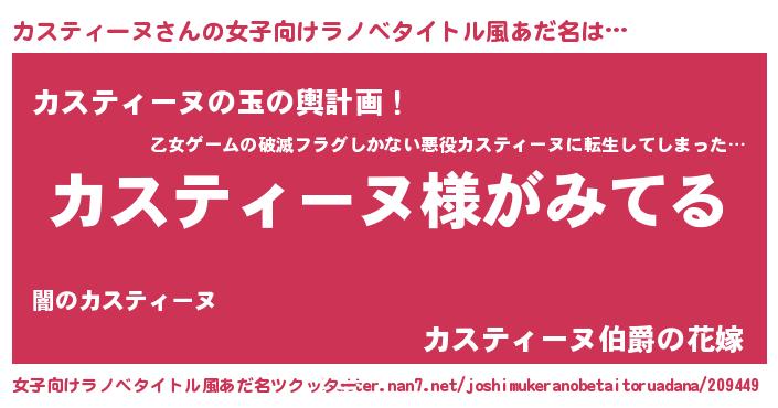 | 男性向けラノベタイトル風あだ名 | 『カスティーヌの嫁は女の子じゃないと思った?』 |