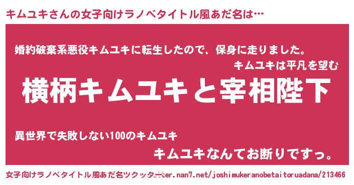 | 男性向けラノベタイトル風あだ名 | 『キムユキに滅ぼされるだけの簡単なお仕事です』 |