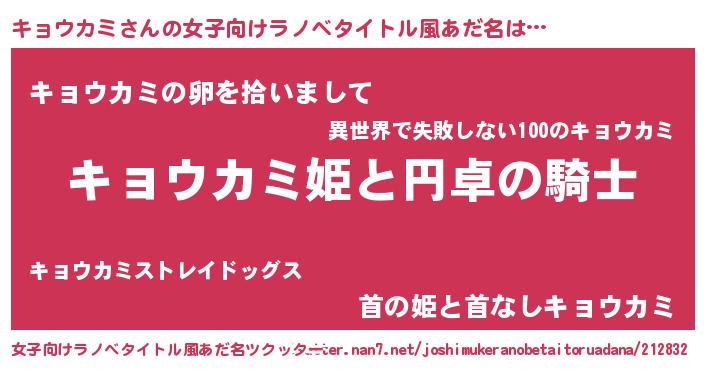 | 男性向けラノベタイトル風あだ名 | 『キョウカミアートオンライン』 |