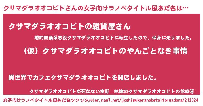 | 胡散臭い通販商品みたいなあだ名 | 『必ず成功する霊験あらたかなお札…その名も「クサマダラオオコビト」』 |