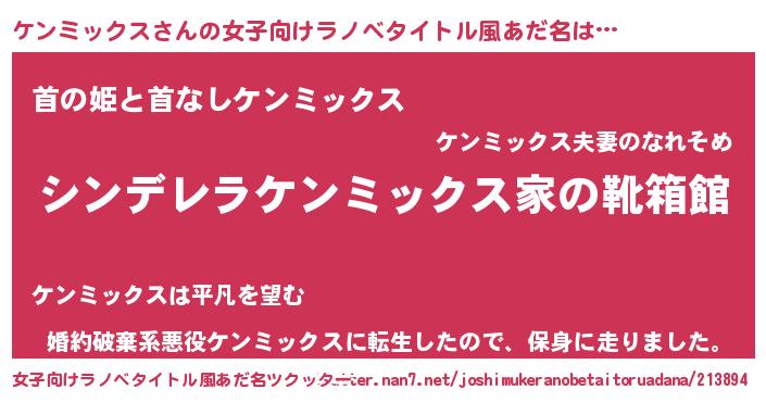 | 男性向けラノベタイトル風あだ名 | 『緋弾のケンミックス』 |