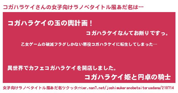 | ヒーロー風カッコイイあだ名 | 『仮面コガダー』『スーパーコガハラケイ』 |