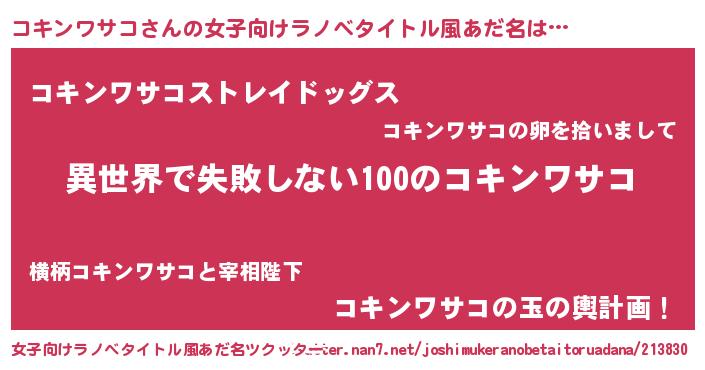 | 胡散臭い通販商品みたいなあだ名 | 『絶対に幸福をもたらす健康食品…その名も「コキンワサコ」』 |
