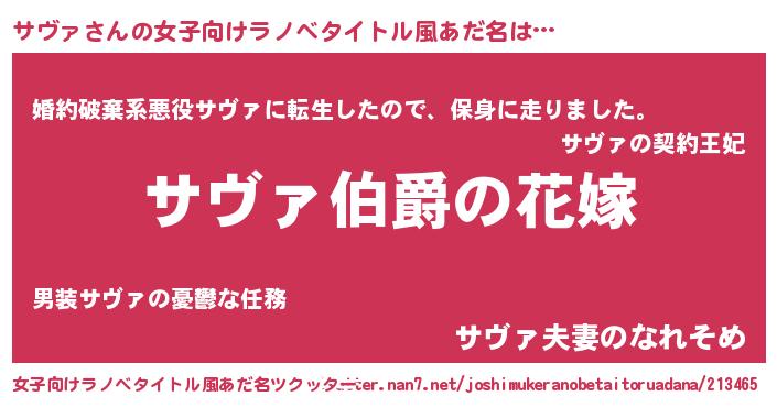 | 意味不明あだ名 | 『サヴァフォーエバー』『永久保存サヴァ』 |