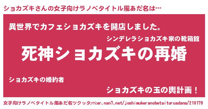 | 男性向けラノベタイトル風あだ名 | 『ノーゲーム・ノーショカズキ』 |