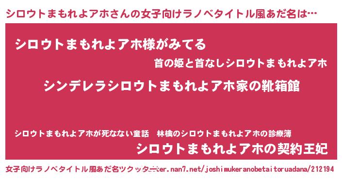 | 胡散臭い通販商品みたいなあだ名 | 『信頼と実績のペンダント…その名も「シロウトまもれよアホ」』 |