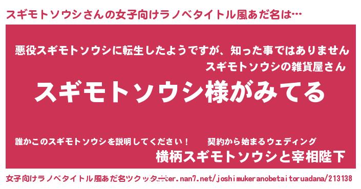 | 意味不明あだ名 | 『とにかく怪しいスギモトソウシ』 |