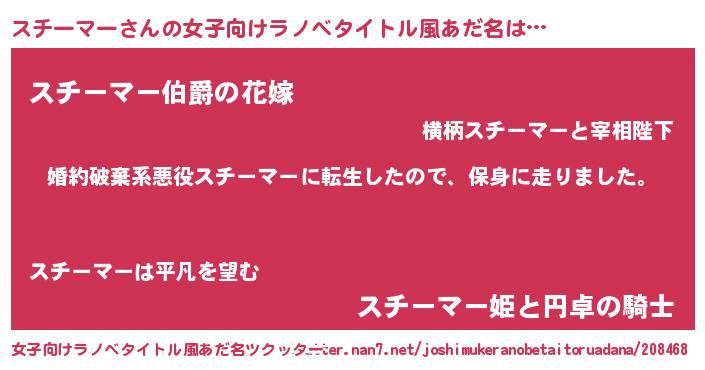 | 男性向けラノベタイトル風あだ名 | 『スチーマースレイヤー』 |