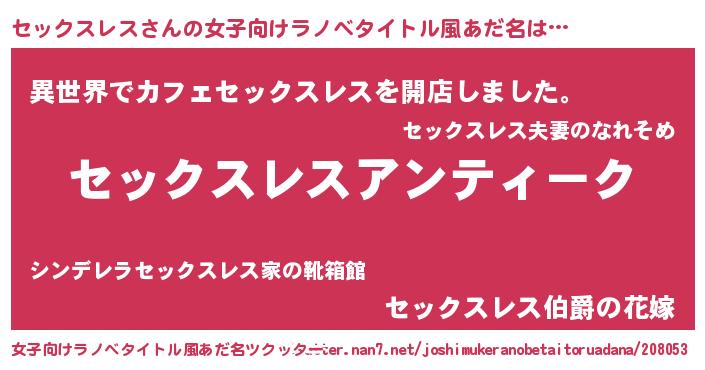 | 意味不明あだ名 | 『自称セックスレス』 |