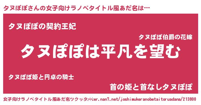 | 男性向けラノベタイトル風あだ名 | 『ダンジョンにタヌぽぽを求めるのは間違っているだろうか』 |
