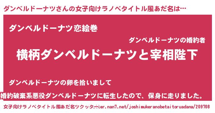 | 男性向けラノベタイトル風あだ名 | 『ダンベルドーナツに滅ぼされるだけの簡単なお仕事です』 |